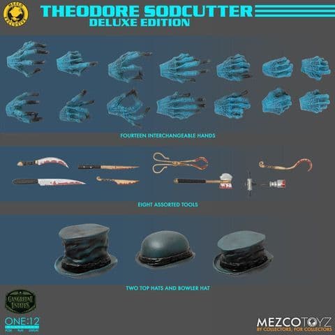 The One:12 Collective Theodore Sodcutter figure features over 20 points of articulation and includes seven pairs of variant hands for plenty of display options.
